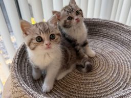 De bekendste vachtkleur in deze variatie is de black silver tabby (de kat uit de Whiskas reclame), maar ook deze variant is in alle kleuren mogelijk. Zo is er in onze Cattery in 2024 een red silver tabby kitten geboren.