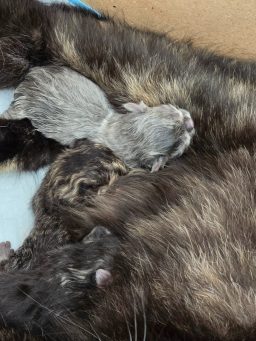 Op 16 maart 2026 is Chuckles bevallen. Chuckles is een lieve mama en zorgt goed voor haar prachtige kereltje (Brits Korthaar black silver tabby bicolor point). Papa van dit kittentje is Percival.